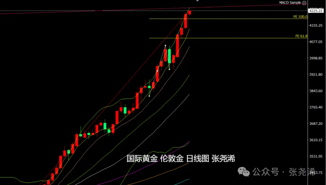 日图;金价昨日仍继续收取阳线,如期触及4200美元关口,维持多头动力,保持在短期均线上方,短期有望继续走强触及布林带上轨目标4240美元或更高位置,下方关注100数值扩展线支撑以及5日均线支撑。