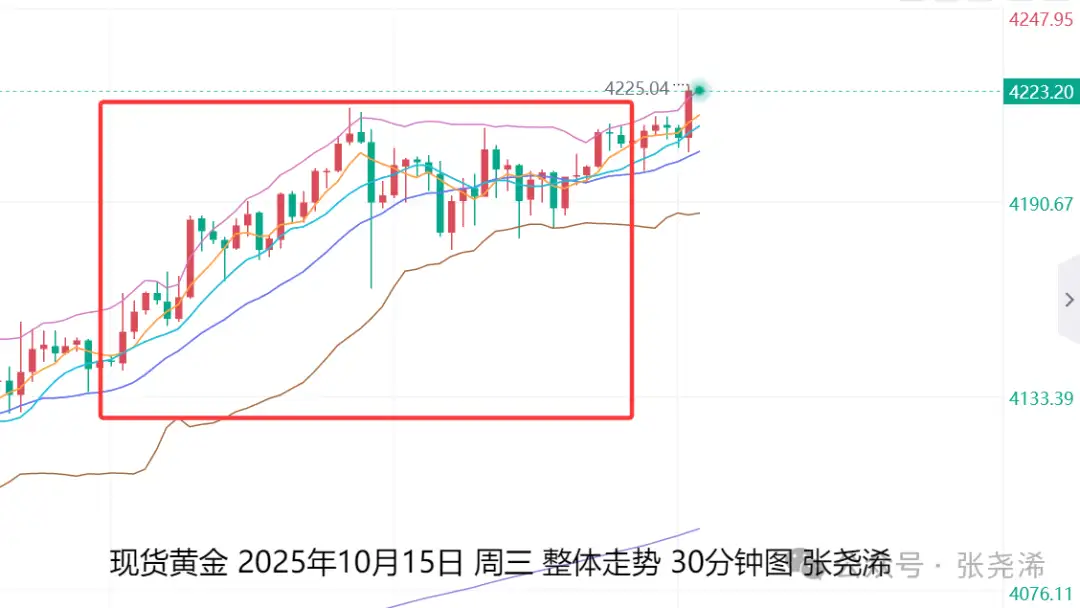 展望今日周四(10月16日):国际黄金开盘多头动力有所减缓,受到金价触及关键目标4200美元位置的观望和获利了结情绪压制,但由于市场缺乏利空事件,因而,如有回撤也是低多为主。