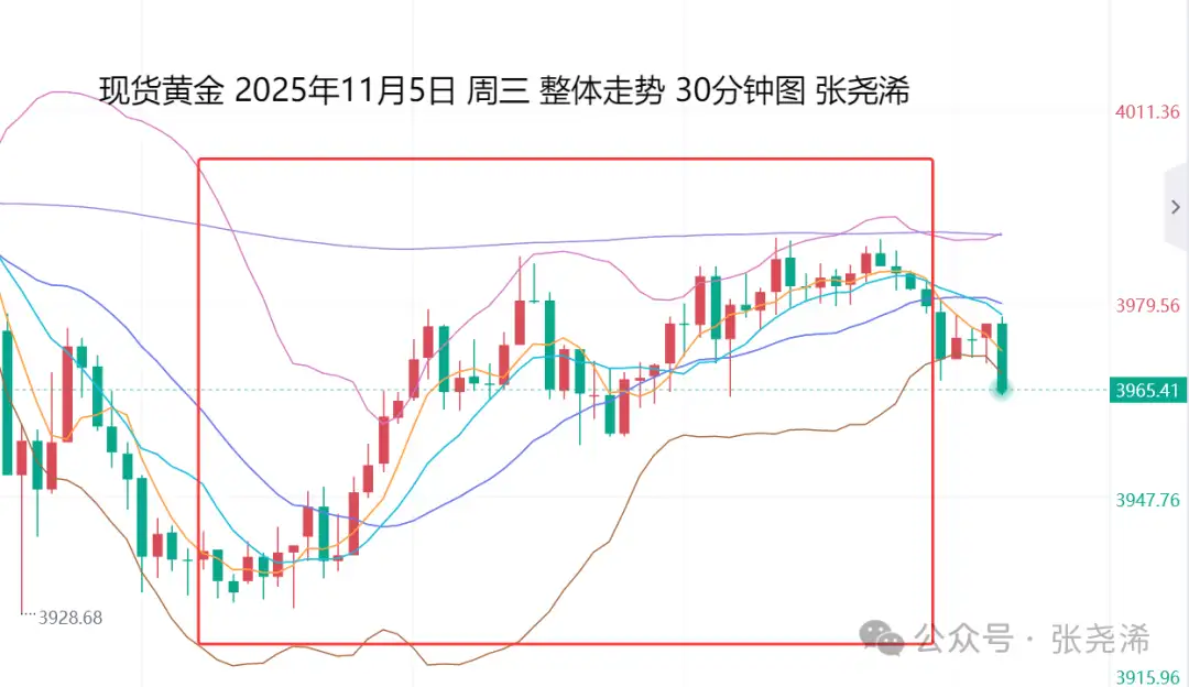 上交易日周三(11月5日):国际黄金止跌回升收涨,虽仍处于中轨及30日均线下方,但持续缩减的附图指标空头信号,和近期的筑底震荡走势来看,下方空间有限,激进者可先逢低入场,稳健者可待再跳水一波,或者是重回中轨上方后再入场即可。