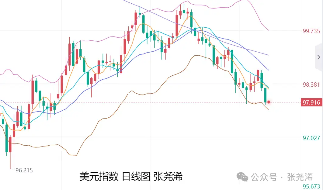 短期来看,美元指数布林带偏向开口向下,前景偏弱,后市将继续走低回落,而继续支持金价反弹,因而,短期操作上,金价仍偏向看涨为主。