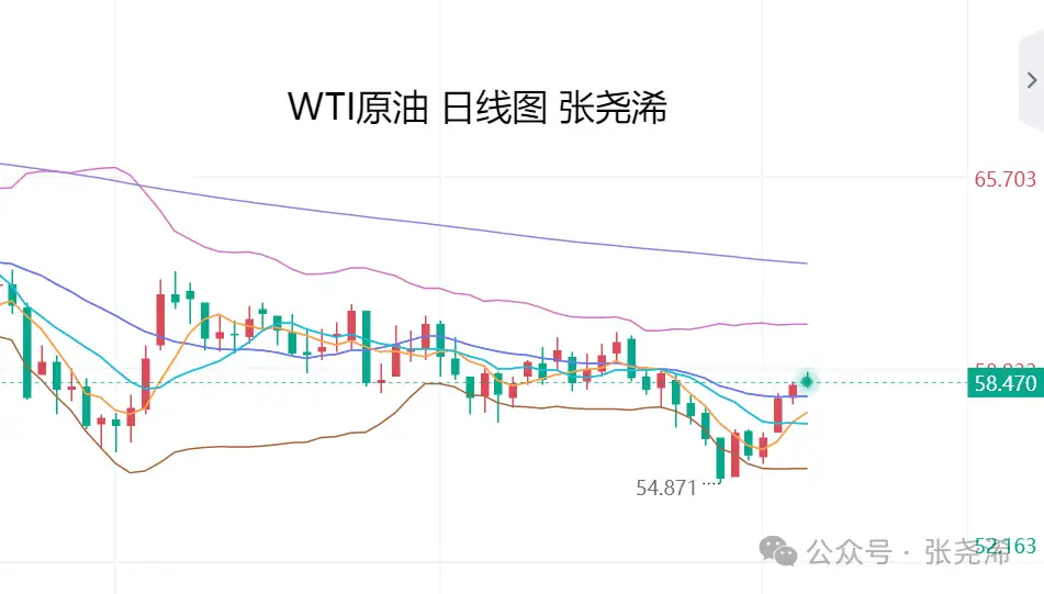 今日周四,受到圣诞节假期影响,油市停盘,但周五将再度开市,虽然目前多头反弹减弱,但短期走势因处于短期均线及中轨上方,多头占据一定优势,并且,美国最新数据显示,其第三季度经济增长速度创下两年新高,为油价提供支撑。另一方面,地缘政治紧张局势加剧,特别是美国对委内瑞拉的封锁以及俄罗斯和乌克兰相互攻击能源基础设施的事件,引发了供应中断的担忧,推高了油价。