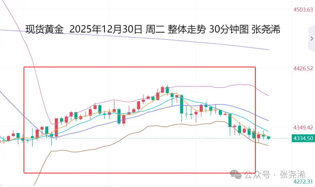 上交易日周二(12月30日):国际黄金先涨后回撤倒垂收平,其形态上,相对于回落低位则是止跌看涨信号,故此,操作上,可继续保持低多看涨为主。