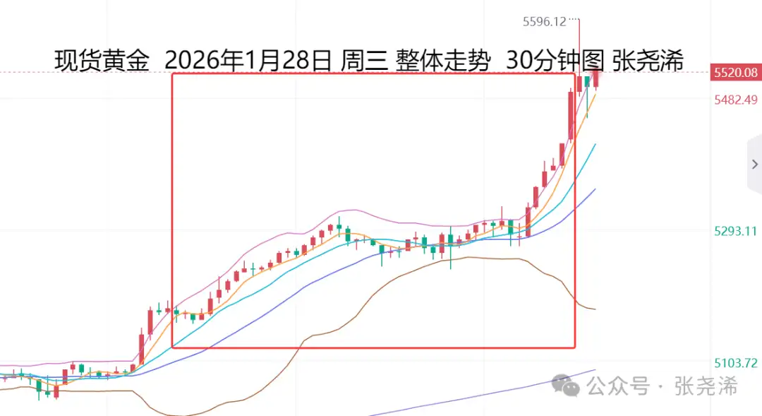 展望今日周四(1月29日):国际黄金开盘至5421.64美元,并先行延续隔夜尾盘多头动力一度拉升至5595.97美元,在买盘的助力下,且还犹豫特朗普考虑对伊朗发动重大打击,加上俄乌等地缘局势的升级而攀升,虽然一度回撤收复大部分涨幅,但回撤触及支撑位仍是做多机会。