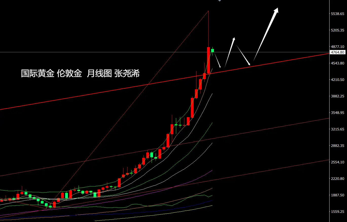 技术上,月线级别,金价1月虽大幅回撤,但仍维持着近一半涨幅,其走势也仍处于突破后的趋势线上方,以及新的牛市空间内,那么,后市就算再度走低,也预计将处于趋势线支撑4300美元上方持续震荡调整,并在这之后再度向上攀升。