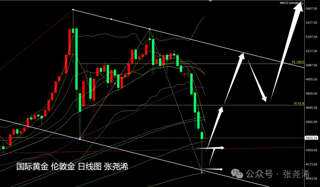日图,金价昨日触底200日均线支撑后,4100美元多单挂单如期成交,并据此大幅反弹回升,收取垂线形态,暗示后市偏向止跌看涨的倾向,根据走势指标指示来看,未来1个月左右,有重回5000美元乃至5400美元目标的预期。