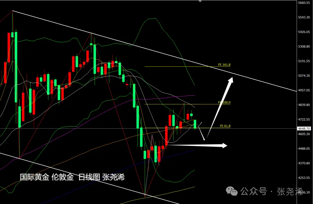 目前市场短期有望迎来美伊第二轮谈判,如预期有所乐观,则会限制金价跌幅,使其反弹,反之如继续谈判受挫,则会打压金价继续走低。使其回撤至4500关口或4300关口附近。但即便如此,个人认为也是再度的入场机会。