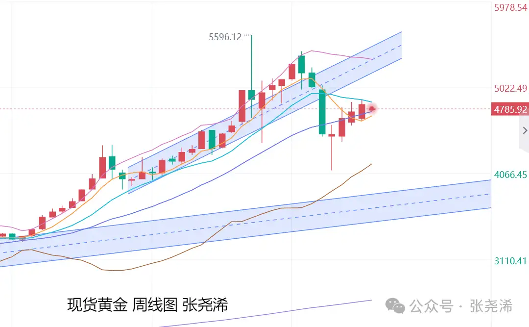 黄金市场上周:国际黄金低开后,继续震荡收涨,但仍未突破10周均线压力,暗示后市仍有再度调整回撤的风险,但目前地缘局势缓和乐观,伊朗也宣布霍尔木兹“完全开放”,这减弱了油价上涨的预期和通胀担忧,故此,后市如有调整走低,关注下方均线支撑,也是入场看涨的机会。
