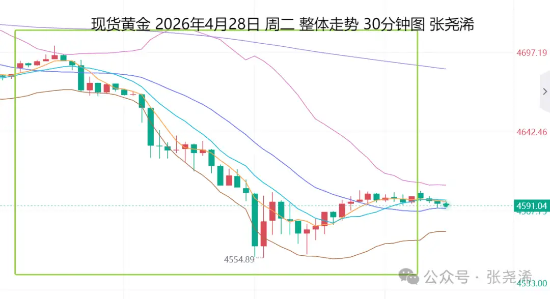 上交易日周二(4月28日):国际黄金回落收跌,仍受美伊局势影响,伊朗表示不认为战争已经结束,而继续向下远离100日均线,振幅相对前几日明显加大,空头力量也有所增强,虽然如期在触及144日均线支撑位置止跌反弹,但如不能重回100日均线上方,则后市仍有再度回撤至200日均线目标4300关口附近的预期。