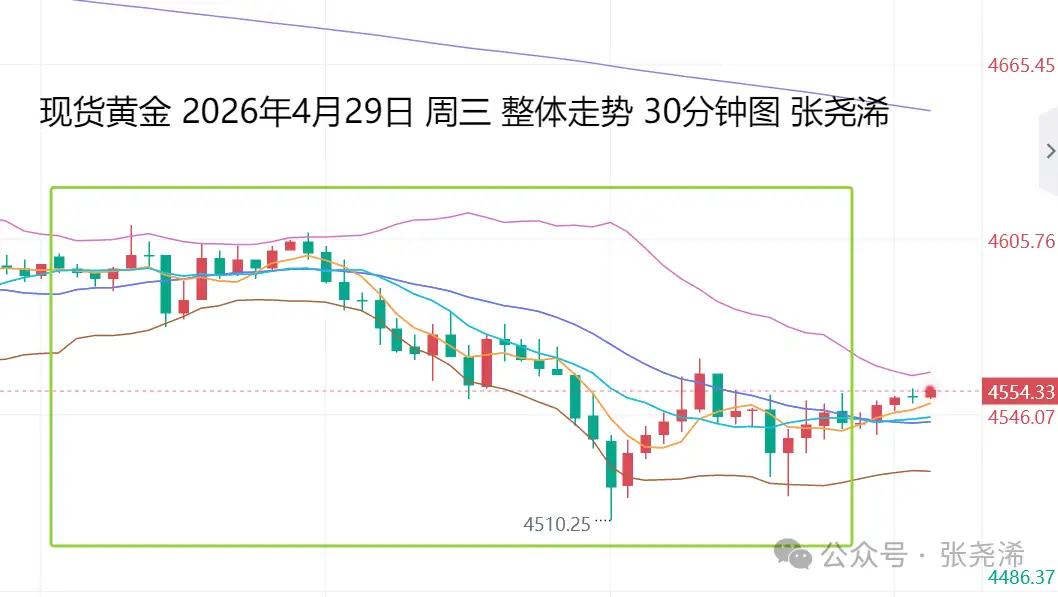 上交易日周三(4月29日):国际黄金继续回落收跌,美伊局势仍未有解决迹象,特朗普表示,在达成协议前,不会解除对伊朗港口的封锁。伊朗也表示将会做出回应,这推动油价大幅反弹收涨8.66%,通胀担忧重燃,再加上美联储会议有众多官员反对维持宽松措辞等,打压金价回落收跌。