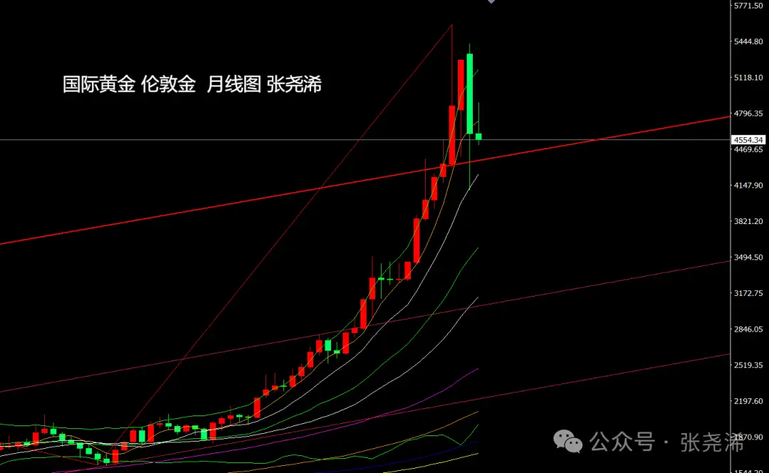 技术上,月线级别,金价3月收线在上升趋势线之上,维持着牛市前景,本月开盘也仍维持在此上升走盘,后市只要不跌破此趋势线下方收线,就仍将有新高的前景预期。如跌破此支撑收跌,则暗示牛市结束。