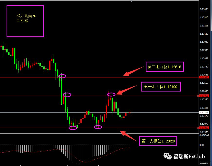 第一支撑位1.12附近轻仓做多,期间如有大阴线跌破1.12关口则观望。