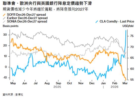 除了避险外,当前市场正在被通胀担忧所主导。能源价格飙升带来的通胀风险,可能限制黄金的涨幅,因该趋势迫使美联储及其全球同业更长时间维持不变,甚至升息。交易员预测美联储今年有80%的机率会降息超过四分之一个百分点,但是不确定性上升,其他主要央行的降息预期也被弱化,因为较高的借贷成本对不支付利息的贵金属来说为利空。