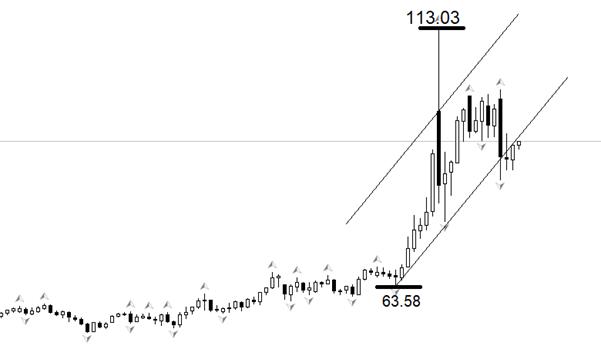 行情方面,日线级别,美原油WTI依旧处于显著的多头趋势,最新上涨波段处于图中通道内部。本周一剧烈下跌后,市价与通道下轨交叉,但周二至周四的反弹走势,将市场价重新拉回至通道内部,意味着通道线对当前行情起到了有效的支撑。如果没有消息面因素扰动的话,美原油WTI极有可能向通道线上轨移动。